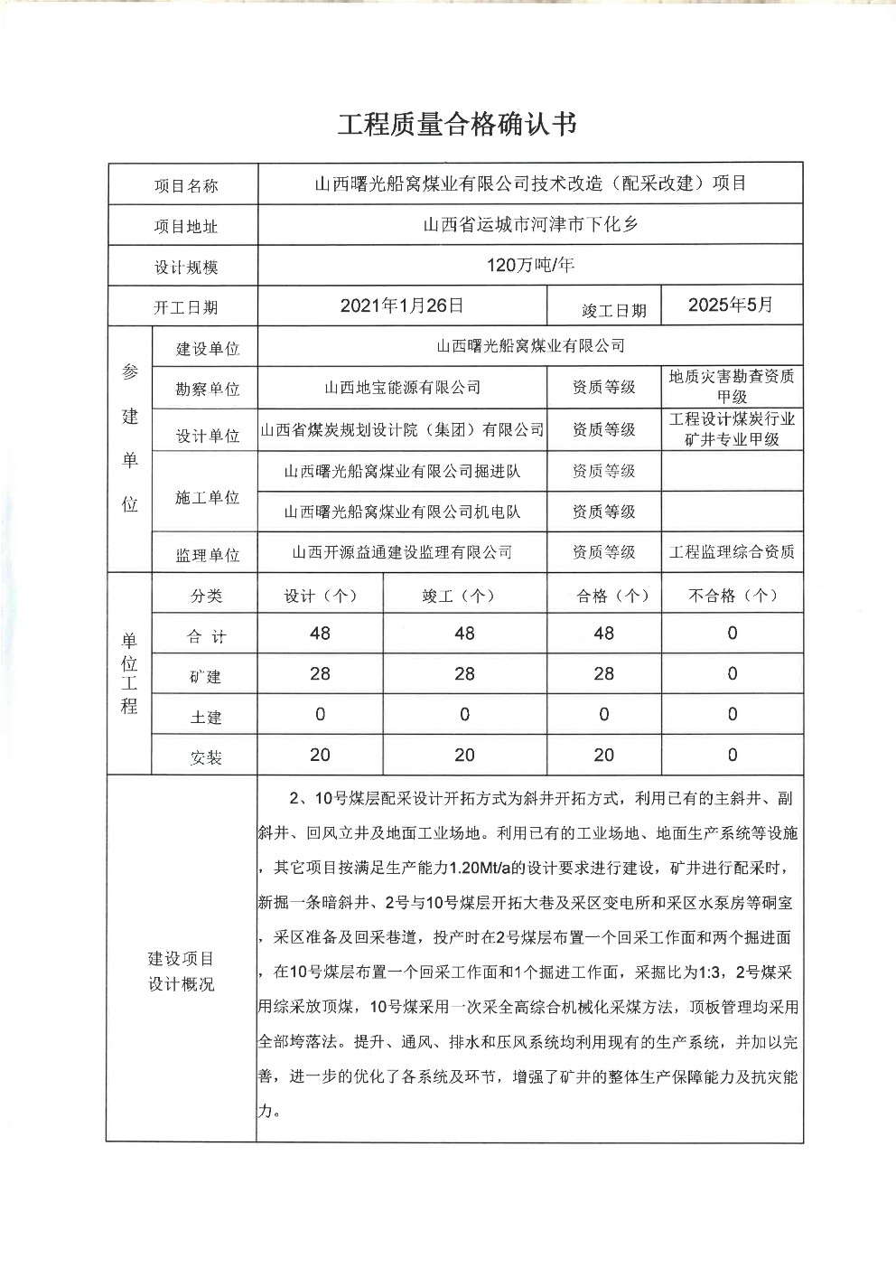 山西曙光船窝煤业有限公司2号与10号煤层配采改建开